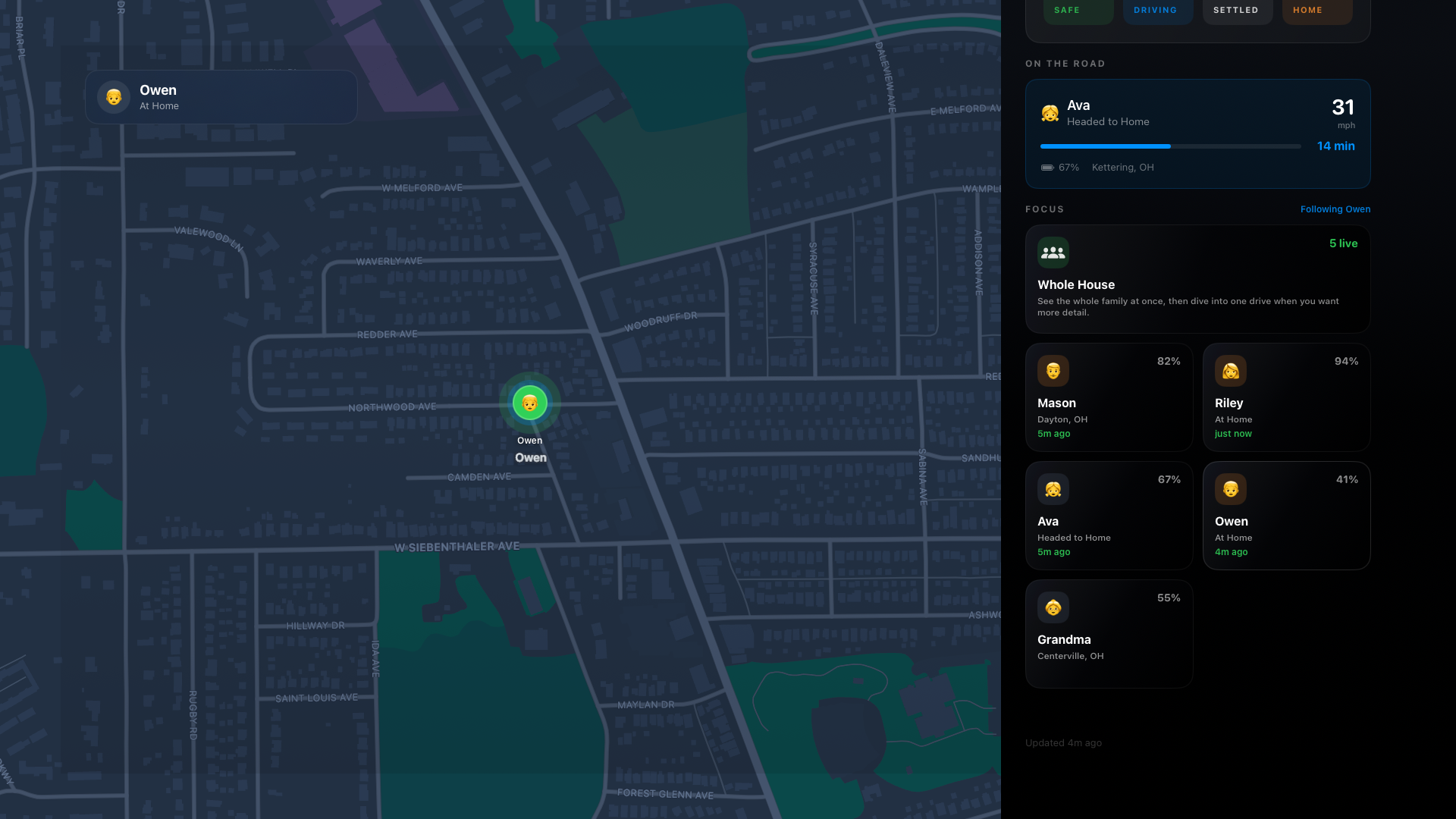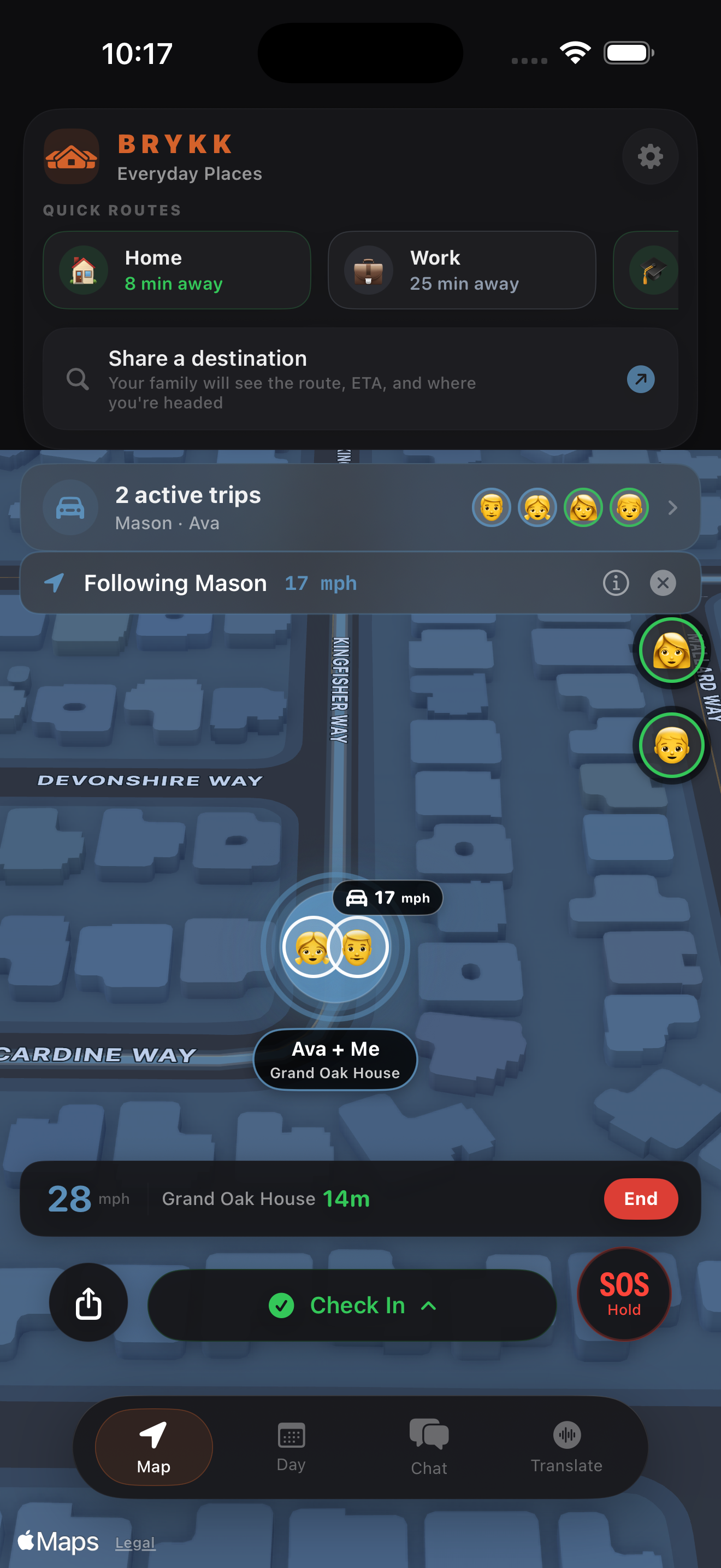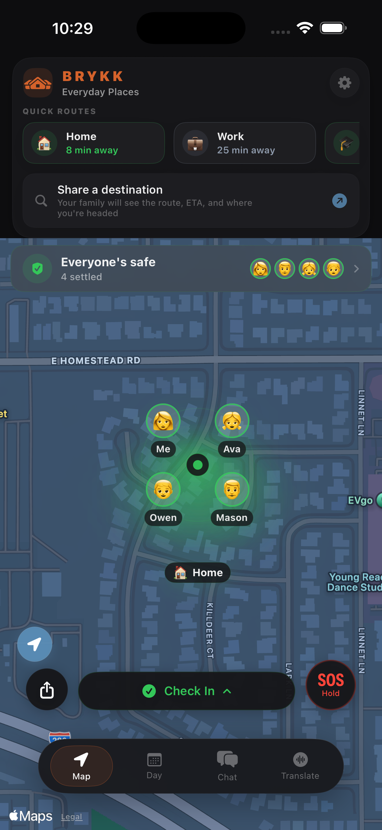 Not a pile of cold pins on a map. BRYKK understands when somebody is driving, riding together, heading home to you, or almost there.