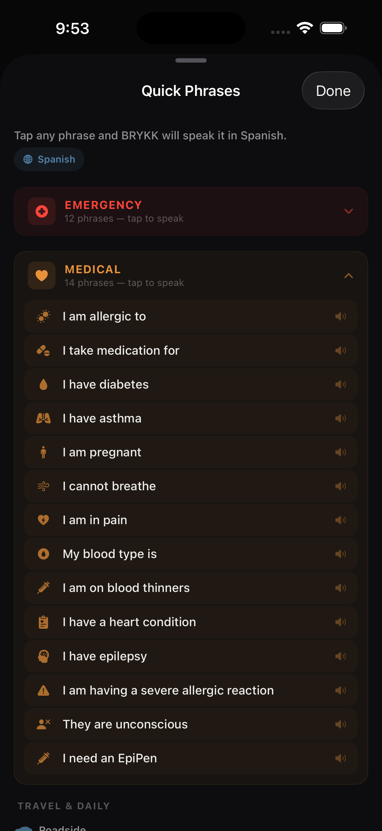 BRYKK is not trapped at home. Translation and quick phrases let parents help kids abroad, friends help friends while traveling, and families communicate across languages without losing the plot.